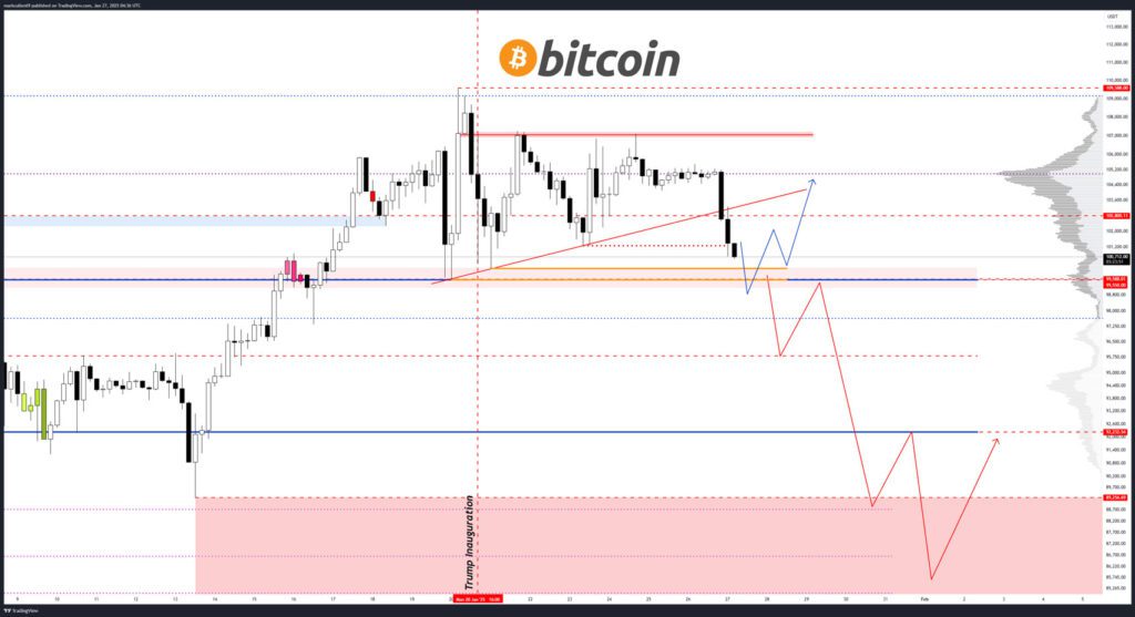 پس از تلاش ناموفق بیت کوین برای حفظ سطح 100,000 دلار در 27 ژانویه، این ارز دیجیتال به محدوده تقاضای 98,000 دلار بازگشت.